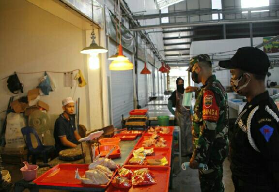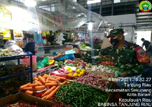 Suaratoday.Com (Batam) – Babinsa 03 Tanjung Riau, Serka Adang Sutiawan, Kodim 0316/Batam, Melaksanakan Monitoring kegiatan Penegakan Disiplin Protokol Kesehatan Covid-19 kepada Pedagang dan Pengunjung pasar Victoria Marina, Kel. Tanjung Riau, Kec. Sekupang.