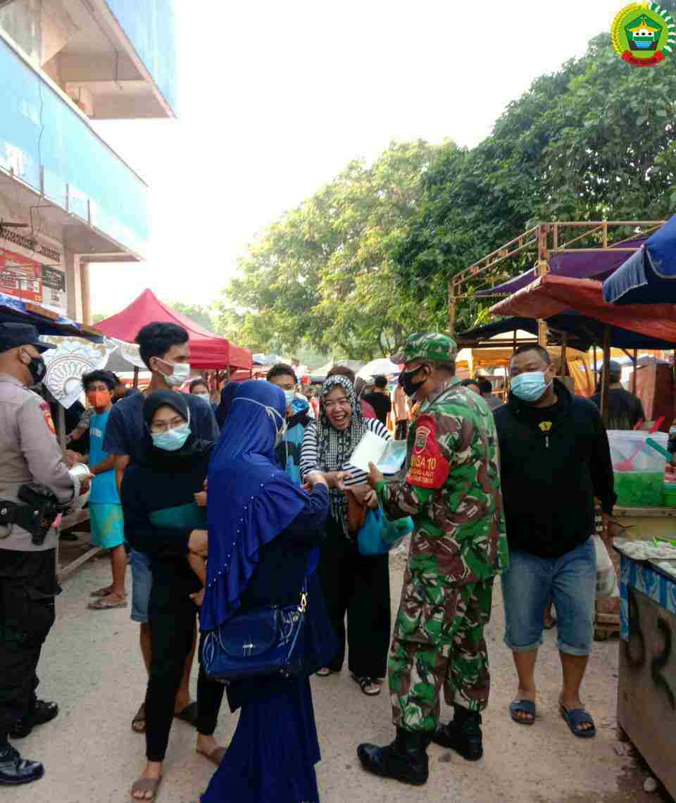 Babinsa 10 Kelurahan Bengkong Laut memberikan himbauan kepada pengunjung dan pedagang bazar ramadhan agar mematuhi protokol kesehatan seperti yang telah ditetapkan oleh pemerintah sebagai upaya mencegah terjadinya penularan virus corona.
