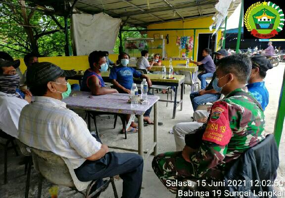 Dikesempatan tersebut Babinsa juga mengingatkan warga agar selalu membatasi kegiatan di malam hari sampai pukul 21.00 WIB, Karena diwilayah Kelurahan Sungai Langkai masih Zona Merah.
