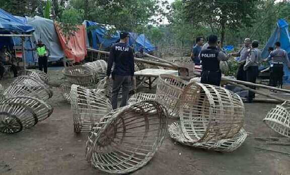Seluruh personil pun melakukan pembongkaran tenda-tenda yang diduga sebagai tempat melakukan tindakan perjudian sabung ayam, beserta beberapa kurungan ayam dan yang digunakan sebagai fasilitas perjudian.